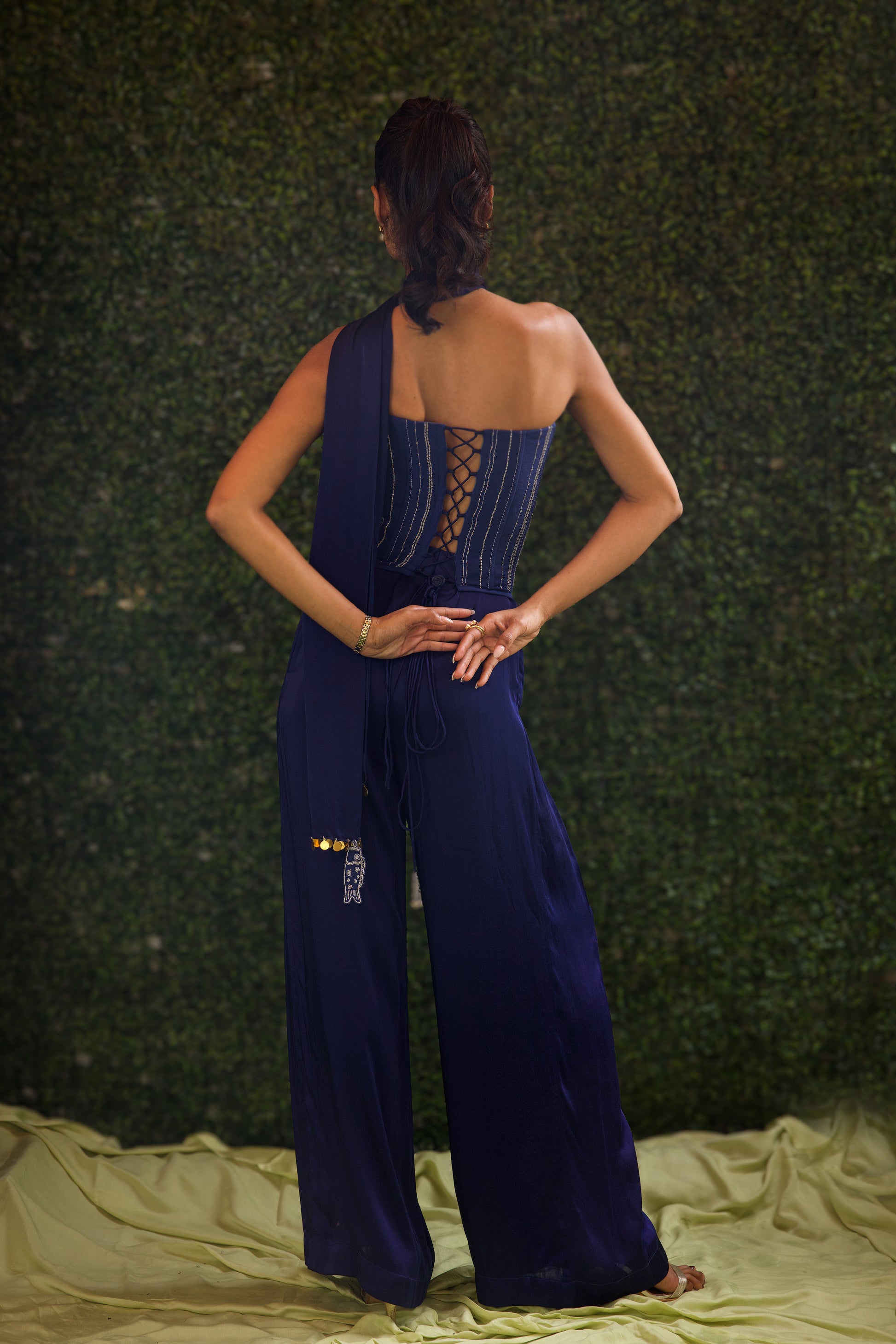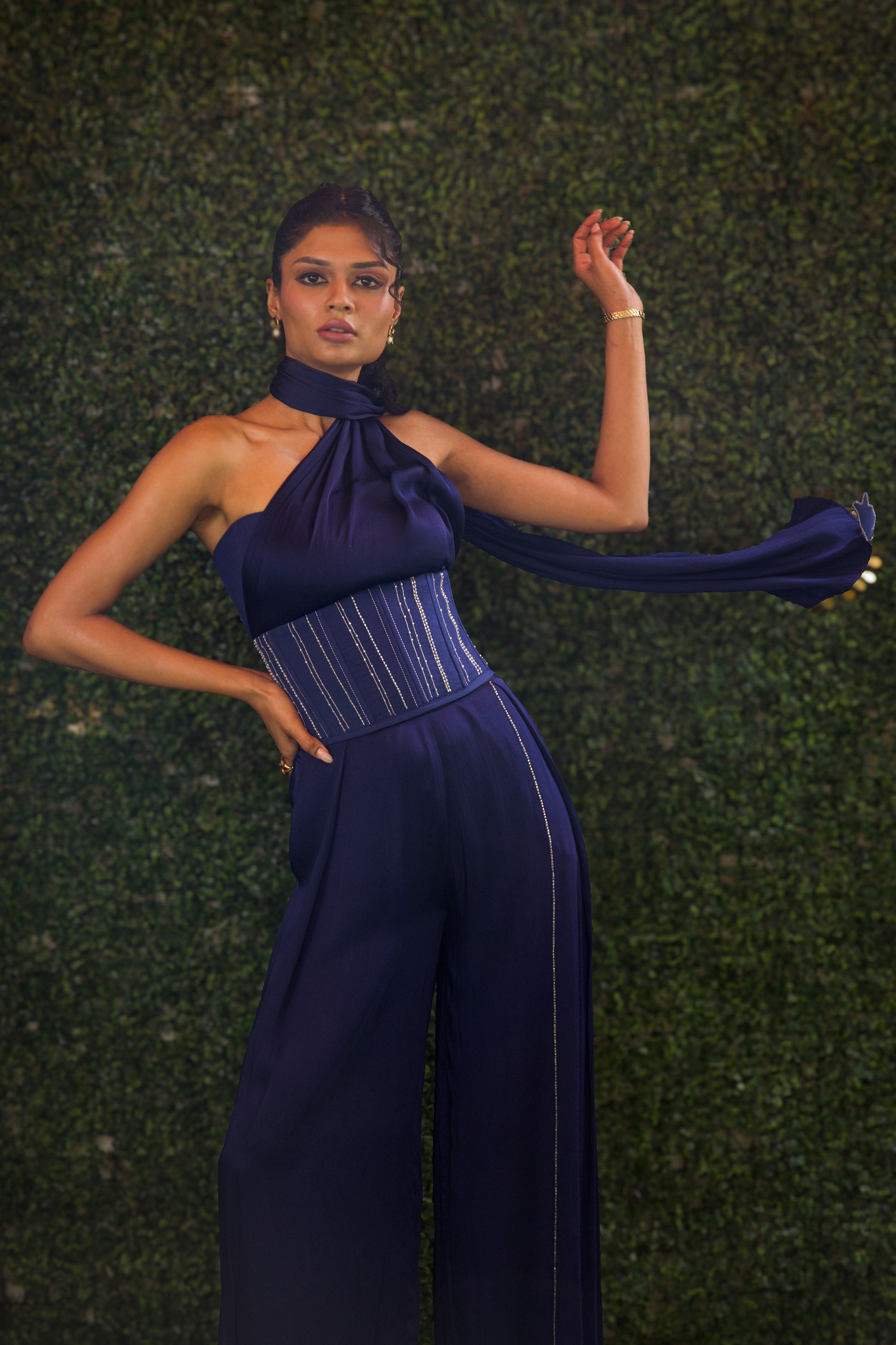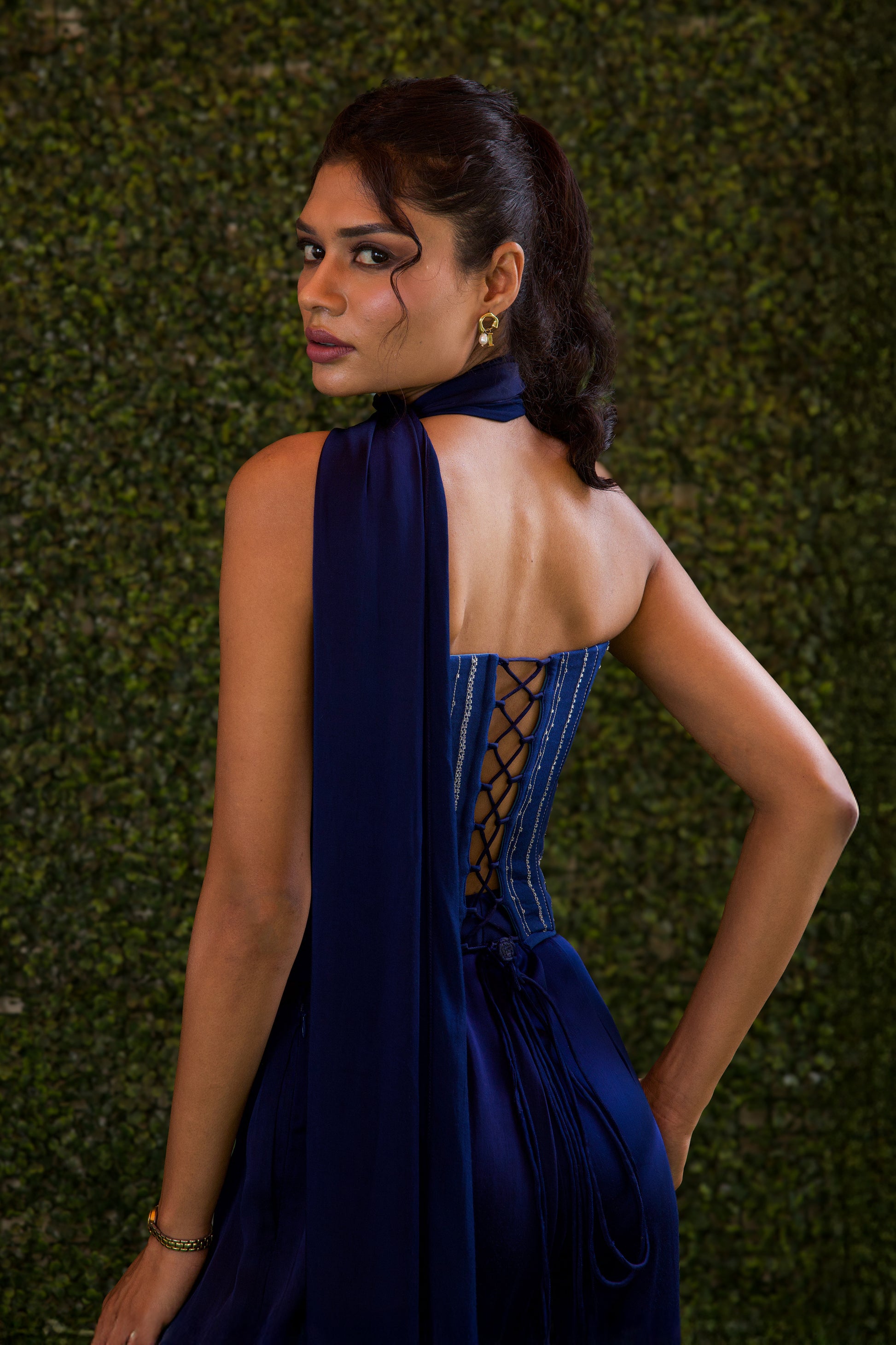 A scarf-style corset top featuring a soft drape and tie-up detail, designed for a flattering, cinched and effortless fit.